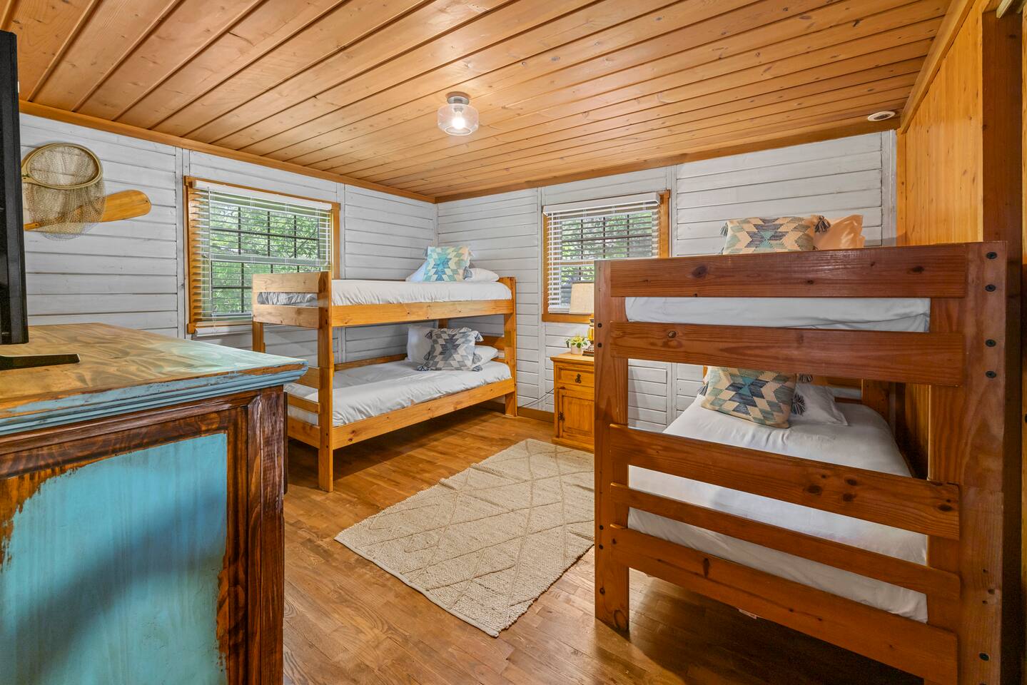 Lands End – 6BR Lakeview Retreat Experience the magic of fall at Lands End! This 6-bedroom, 4-bath Branson retreat offers stunning lake views, a cozy game room, and the perfect deck and fire pit for crisp autumn evenings—just minutes from Silver Dollar City and Table Rock Lake. Cozy up this fall at Lands End, your ultimate family getaway in Branson, Missouri! This spacious 6-bedroom, 4-bath cabin offers stunning lake views and is just 5 minutes from Silver Dollar City—perfect for enjoying fall festivals, autumn foliage, and all the seasonal fun Branson has to offer. The Space With 2,400 sq. ft., Lands End comfortably sleeps up to 15 guests. Each bedroom is large and inviting, with private bathrooms for comfort and privacy. The open living and dining area is perfect for family gatherings, while the fully equipped kitchen makes cooking fall feasts easy. Spend chilly evenings by the fire pit or cozy up in the game room for indoor fun. Don’t forget the lake view deck—ideal for sipping hot cocoa while watching the sunset. Guest Access Enjoy full access to the entire home, including the private yard, deck, and fire pit. Why Guests Love Lands End 6 spacious bedrooms with 4 private bathrooms Game room with entertainment for all ages Lakeview deck and fire pit for cozy autumn evenings Just minutes from Silver Dollar City, Table Rock Lake, and fall festivities
