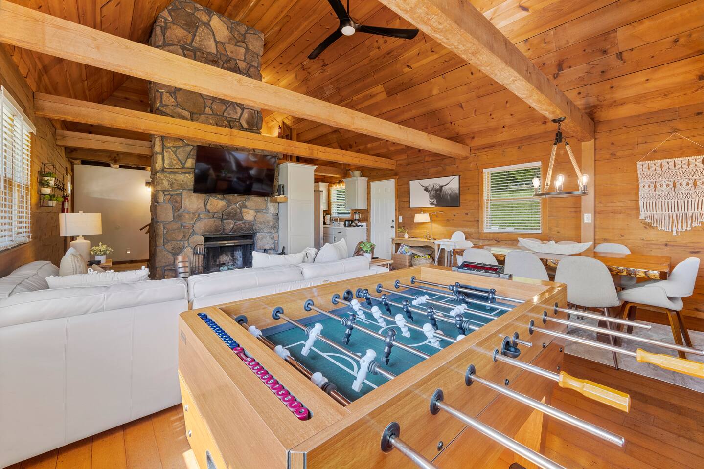 Escape to this 4-bedroom, 2-bath vacation rental cabin that boasts a prime location on Table Rock Lake. With 2,200 square feet of space, this cabin offers a perfect blend of comfort and convenience for your stay in Branson. Whether you're looking to unwind by the fire pit, challenge your companions to a friendly game of Foosball, or simply soak in the tranquil backwoods ambiance, The Lakeside Lodge promises a memorable and relaxing getaway experience. Located minutes away from Branson's most popular attractions, this cabin serves as the ideal home base for exploring all that this vibrant city has to offer. Embrace the magic of Branson and make your stay at Sundowner an unforgettable one. THE WATERSIDE MANAGEMENT GROUP DIFFERENCE Unlike the large rental sites, we are family owned and operated right in the heart of Table Rock Lake. Our knowledge and expertise can help ensure the perfect booking for you and your family. Our homes are built and designed with the lake experience in mind. All the details that go into our homes are designed to ensure for the best possible Table Rock Lake vacation experience. We pride ourselves in providing a good, trustworthy service at a reasonable price, so you can relax and know you’re in safe hands!